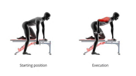 Dumbbell rowing: how it works- Position an adjustable weight bench at a slight incline.