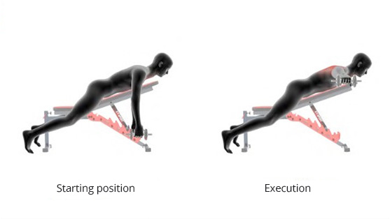 - Lie on your back on an adjustable weight bench or a flat bench.